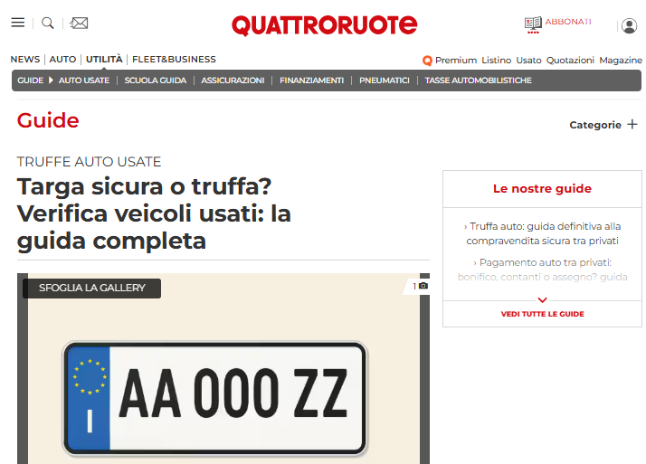 L’articolo di Quattroruote analizza il crescente utilizzo dei Report online sullo storico dei veicoli usati (come quelli di Carfax, Carvertical o Pratico.it) come strumento per rendere più sicure le compravendite tra privati. Questi report, ottenuti tramite targa o numero di telaio, forniscono informazioni utili come sinistri pregressi, storico dei chilometri e numero di proprietari.